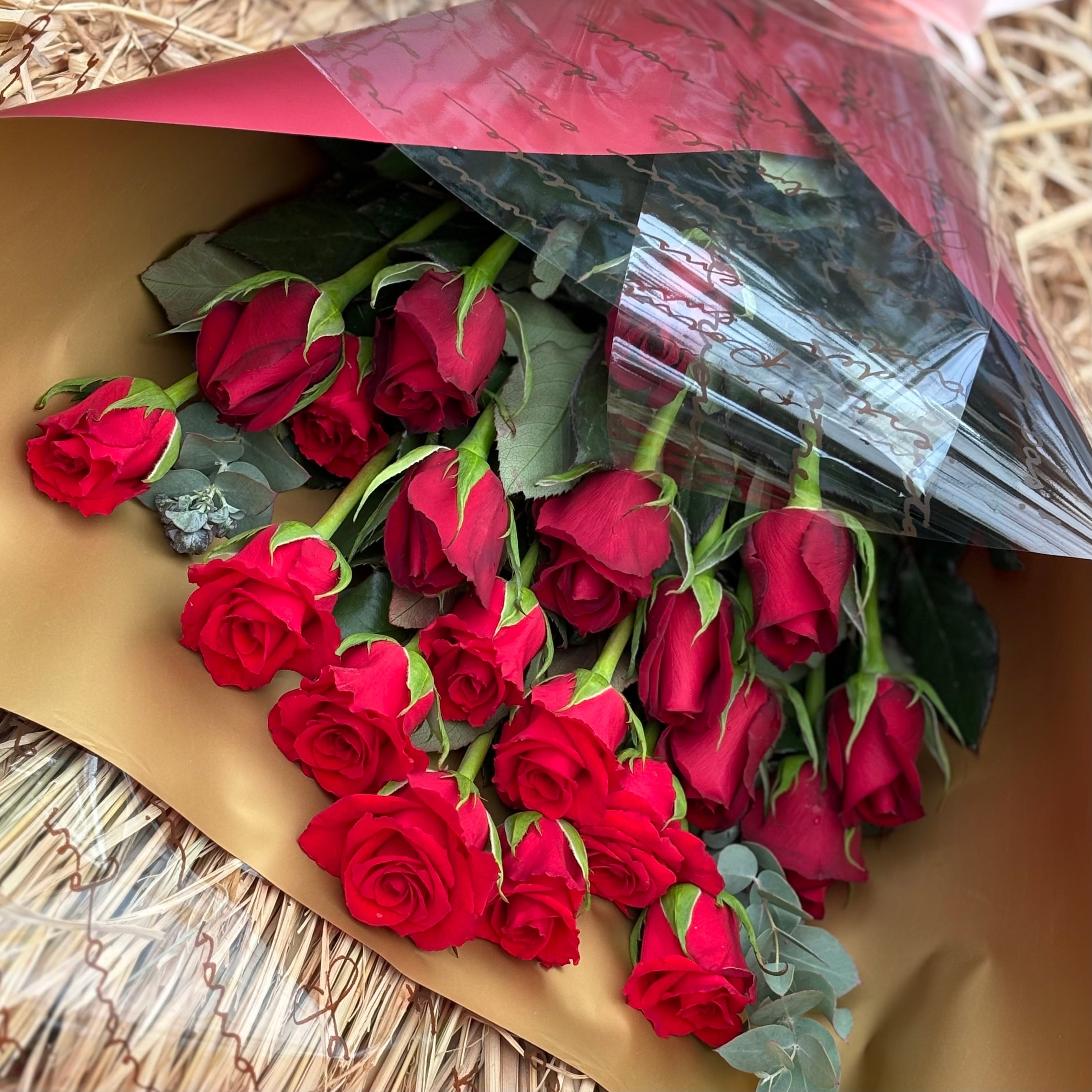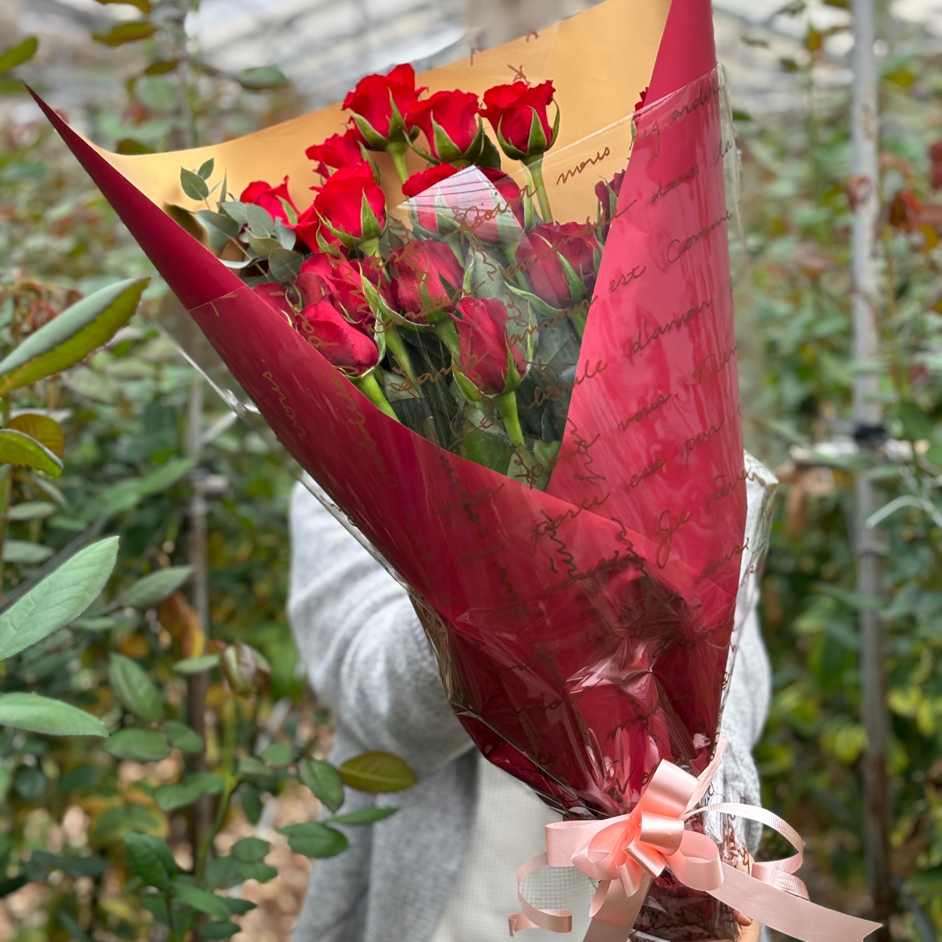 【送料無料】赤バラMIX25本とユーカリの花束